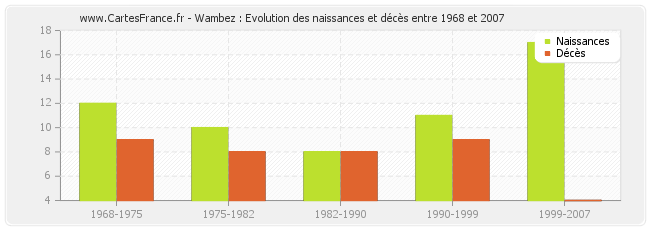 Wambez : évolution des naissances et décès de 1968 à 2007