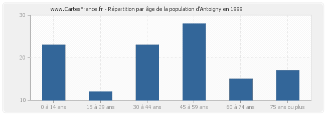 - Population d'Antoigny de 45 à 59 ans : 28 habitants