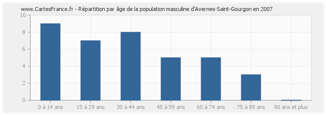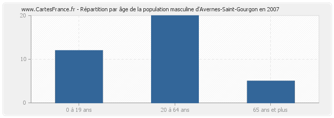 Répartition de la population masculine d'Avernes-Saint-Gourgon par âge en 2007 :