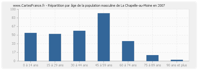 Répartition de la population masculine de La Chapelle-au-Moine par âge en 2007 :