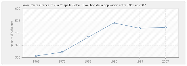 La population de La Chapelle-Biche était de 486 habitants en 2007, 480 habitants en 1999, 513 habitants en 1990, 424 habitants en 1982, 333 habitants en 1975 et 310 habitants en 1968.