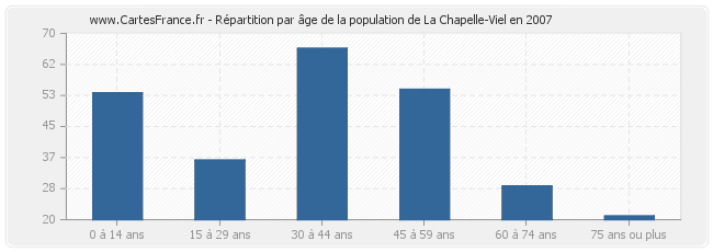 - Population de La Chapelle-Viel de 30 à 44 ans : 66 habitants