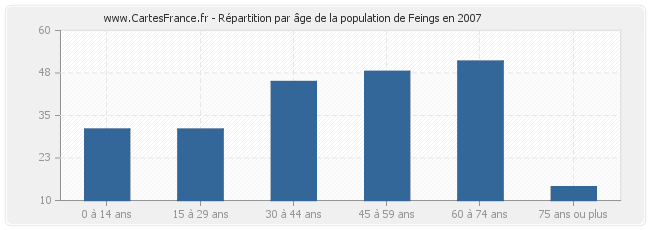 - Population de Feings de 60 à 74 ans : 51 habitants