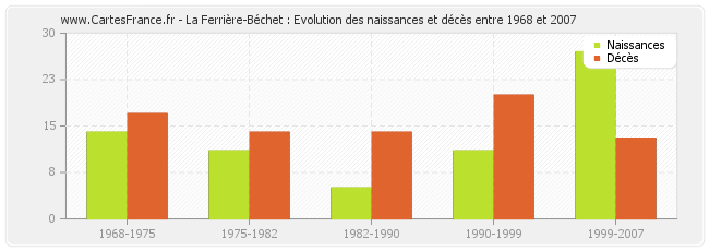 La Ferrière-Béchet : évolution des naissances et décès de 1968 à 2007