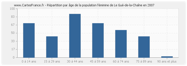 Répartition de la population féminine de Le Gué-de-la-Chaîne par âge en 2007 :