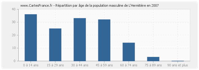 - Hommes de 0 à 14 ans habitant L'Hermitière : 36