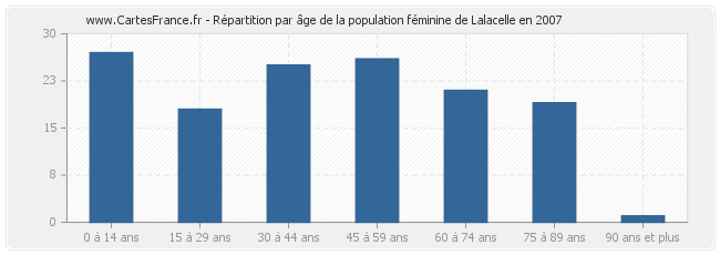 Répartition de la population féminine de Lalacelle par âge en 2007 :
