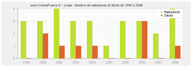Livaie : évolution des naissances et décès de 1968 à 2007