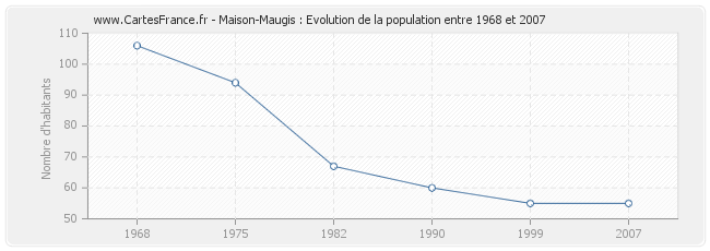 La population de Maison-Maugis était de 55 habitants en 2007, 55 habitants en 1999, 60 habitants en 1990, 67 habitants en 1982, 94 habitants en 1975 et 106 habitants en 1968.