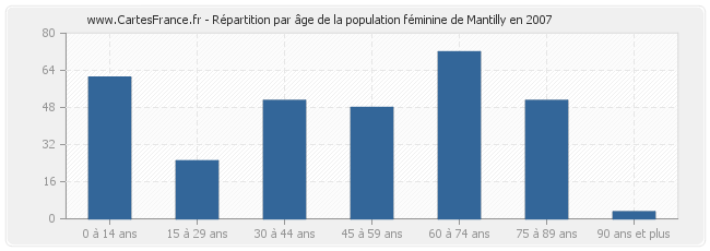 Répartition de la population féminine de Mantilly par âge en 2007 :
