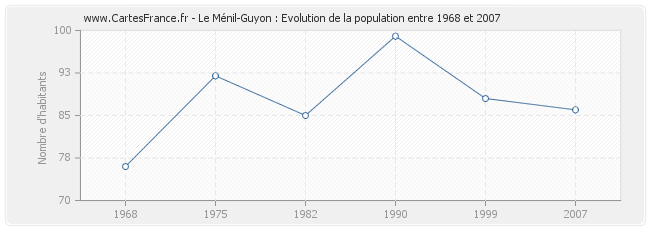 La population de Le Ménil-Guyon était de 86 habitants en 2007, 88 habitants en 1999, 99 habitants en 1990, 85 habitants en 1982, 92 habitants en 1975 et 76 habitants en 1968.