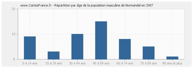 Répartition de la population masculine de Normandel par âge en 2007 :