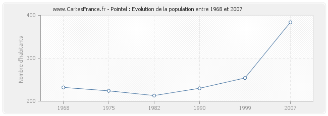 La population de Pointel était de 384 habitants en 2007, 254 habitants en 1999, 230 habitants en 1990, 213 habitants en 1982, 224 habitants en 1975 et 232 habitants en 1968.