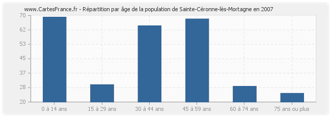 - Population de Sainte-Céronne-lès-Mortagne de 0 à 14 ans : 69 habitants