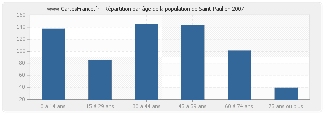 - Population de Saint-Paul de 30 à 44 ans : 144 habitants