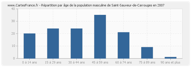 - Hommes de 45 à 59 ans habitant Saint-Sauveur-de-Carrouges : 35