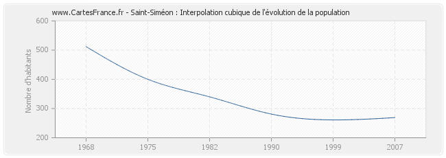Cette courbe reprend l'historique de la population de Saint-Siméon de 1968 à 2007 en interpolation cubique. Ceci permet d'obtenir plus précisément la population de la commune de Saint-Siméon les années ou aucun recensement n'a été effectué.