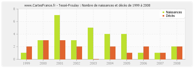 - Tessé-Froulay en 1999 : 1 naissances et 2 décès