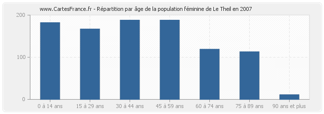 Répartition de la population féminine de Le Theil par âge en 2007 :