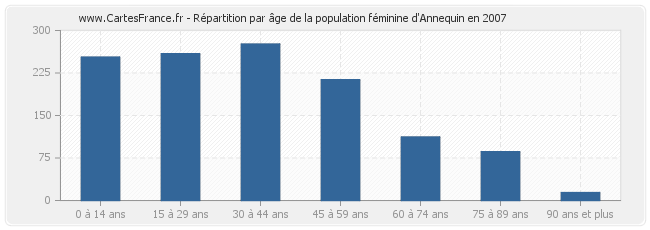 Répartition de la population féminine d'Annequin par âge en 2007 :