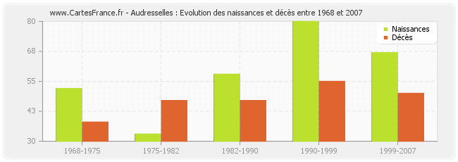 Audresselles : évolution des naissances et décès de 1968 à 2007