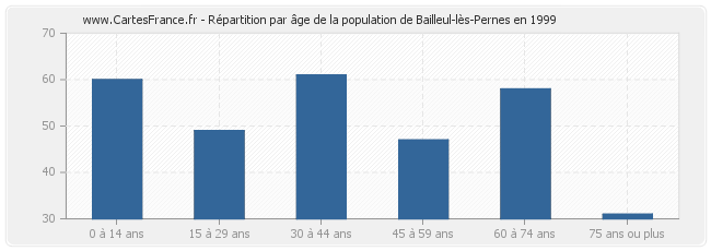 - Population de Bailleul-lès-Pernes de 30 à 44 ans : 61 habitants