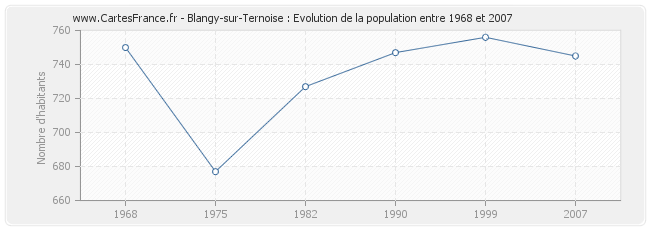 La population de Blangy-sur-Ternoise était de 745 habitants en 2007, 756 habitants en 1999, 747 habitants en 1990, 727 habitants en 1982, 677 habitants en 1975 et 750 habitants en 1968.