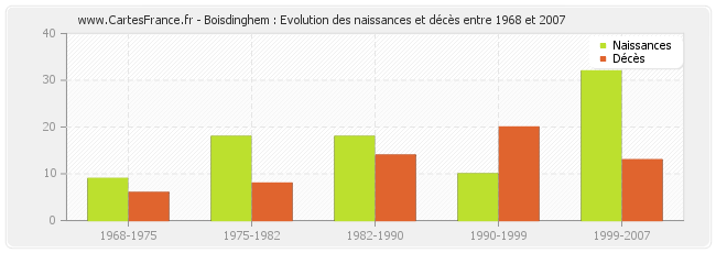 Boisdinghem : évolution des naissances et décès de 1968 à 2007