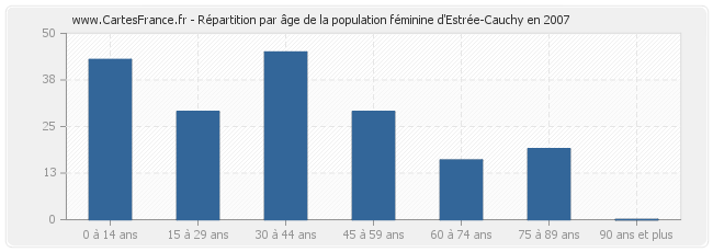 - Femmes de 30 à 44 ans habitant Estrée-Cauchy : 45