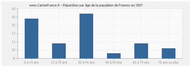 - Population de Fresnoy de 30 à 44 ans : 17 habitants