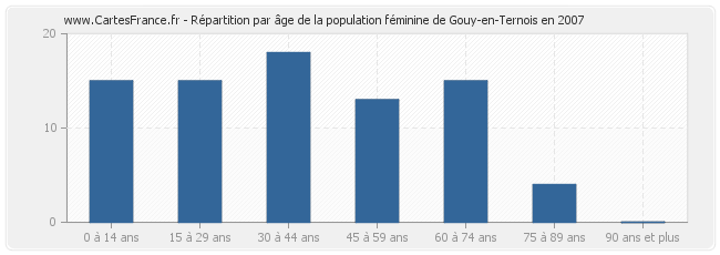 Répartition de la population féminine de Gouy-en-Ternois par âge en 2007 :
