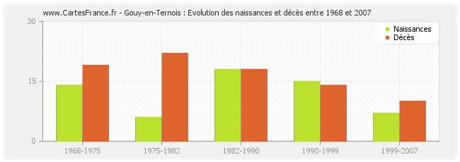 Gouy-en-Ternois : évolution des naissances et décès de 1968 à 2007