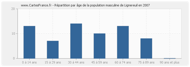Répartition de la population masculine de Lignereuil par âge en 2007 :