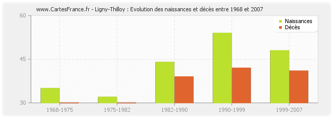 Ligny-Thilloy : évolution des naissances et décès de 1968 à 2007
