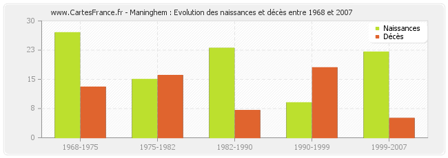 Maninghem : évolution des naissances et décès de 1968 à 2007