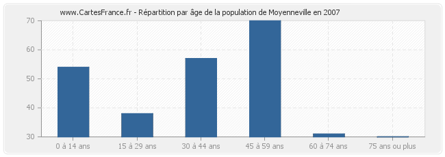 - Population de Moyenneville de 45 à 59 ans : 70 habitants