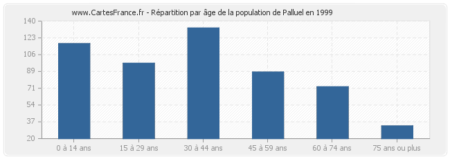 - Population de Palluel de 30 à 44 ans : 133 habitants
