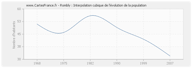 Cette courbe reprend l'historique de la population de Rombly de 1968 à 2007 en interpolation cubique. Ceci permet d'obtenir plus précisément la population de la commune de Rombly les années ou aucun recensement n'a été effectué.
