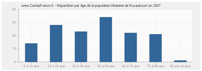 - Le nombre de femmes habitant Ruyaulcourt en 2007 était de 143