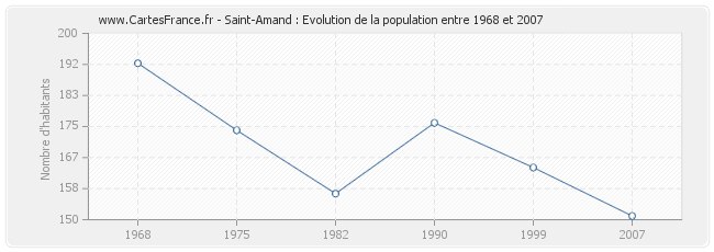 La population de Saint-Amand était de 151 habitants en 2007, 164 habitants en 1999, 176 habitants en 1990, 157 habitants en 1982, 174 habitants en 1975 et 192 habitants en 1968.