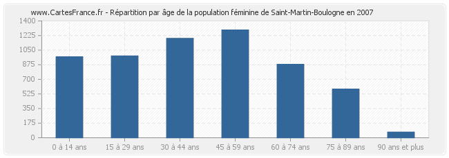Répartition de la population féminine de Saint-Martin-Boulogne par âge en 2007 :