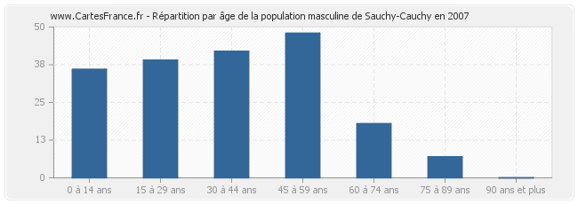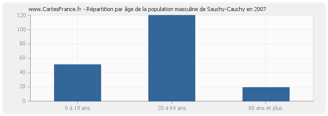 Répartition de la population masculine de Sauchy-Cauchy par âge en 2007 :