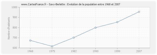 La population de Savy-Berlette était de 956 habitants en 2007, 854 habitants en 1999, 800 habitants en 1990, 702 habitants en 1982, 616 habitants en 1975 et 674 habitants en 1968.