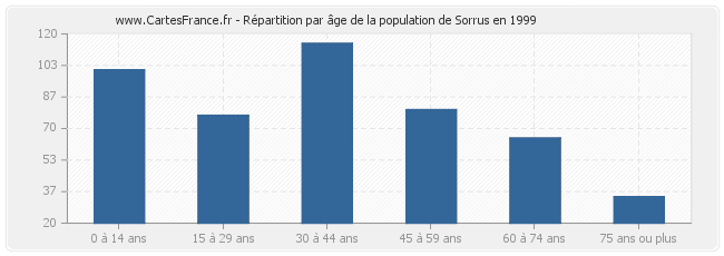 - Population de Sorrus de 30 à 44 ans : 115 habitants