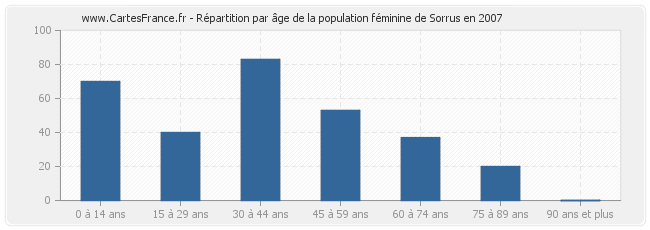 Répartition de la population féminine de Sorrus par âge en 2007 :