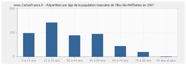 Répartition de la population masculine de Tilloy-lès-Mofflaines par âge en 2007 :