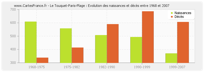 Le Touquet-Paris-Plage : évolution des naissances et décès de 1968 à 2007
