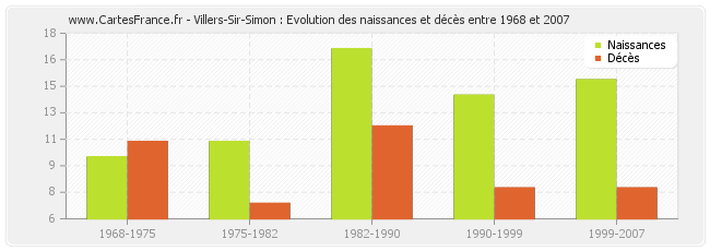Villers-Sir-Simon : évolution des naissances et décès de 1968 à 2007