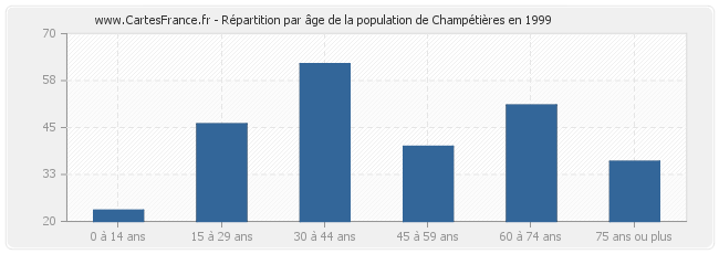 - Population de Champétières de 30 à 44 ans : 59 habitants