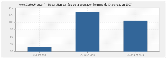 Répartition de la population féminine de Charensat par âge en 2007 :